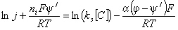 где j – плотность тока, ks - гетерогенная константа скорости; [С] – объемная концентрация реагента; ni – заряд реагирующей частицы,